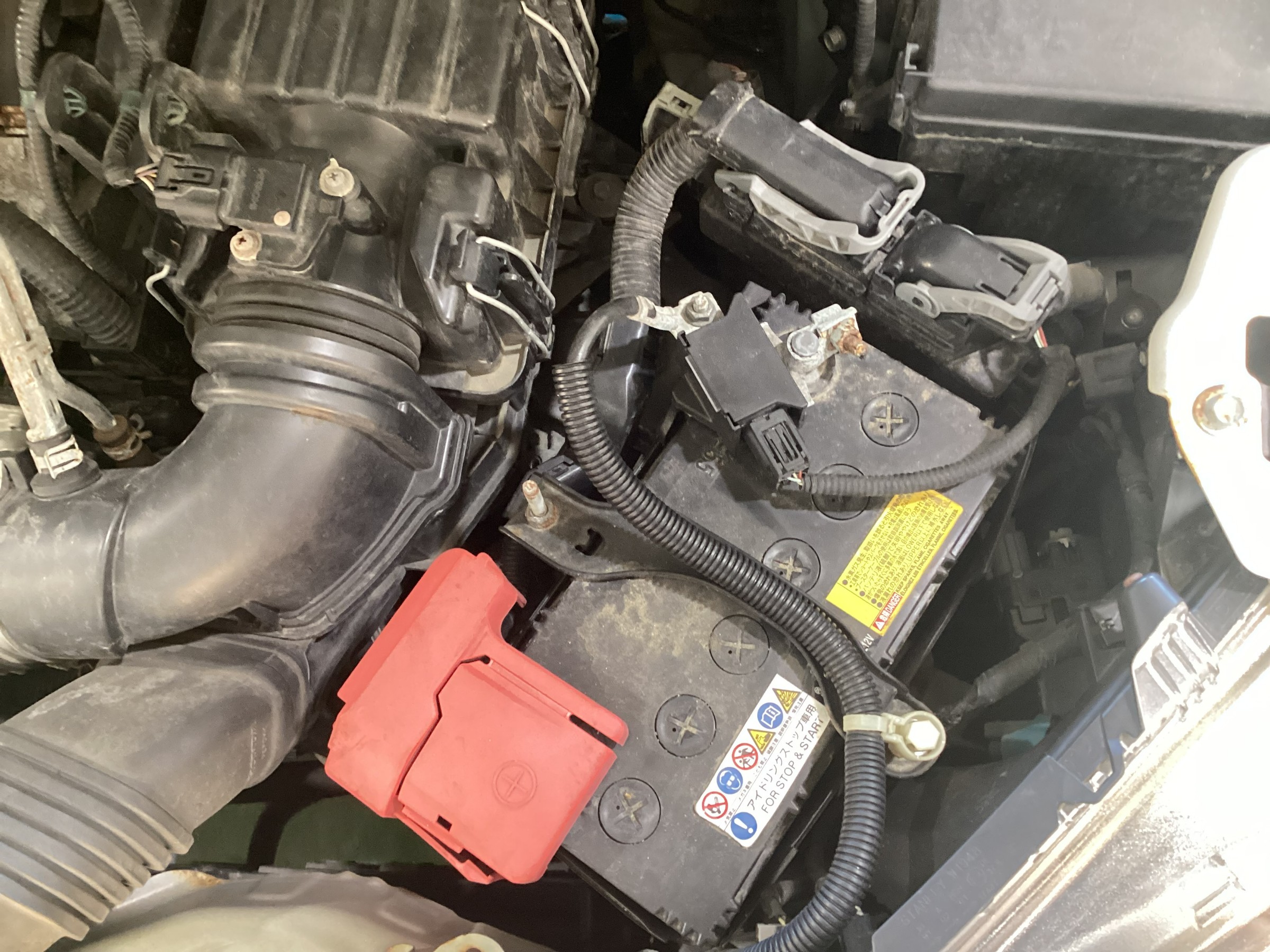 アイドリングストップ車で取付されていたバッテリーがN-55でしたので、同じサイズでバッテリーの性能ランク値が高いNー80を取り付けていきます!!