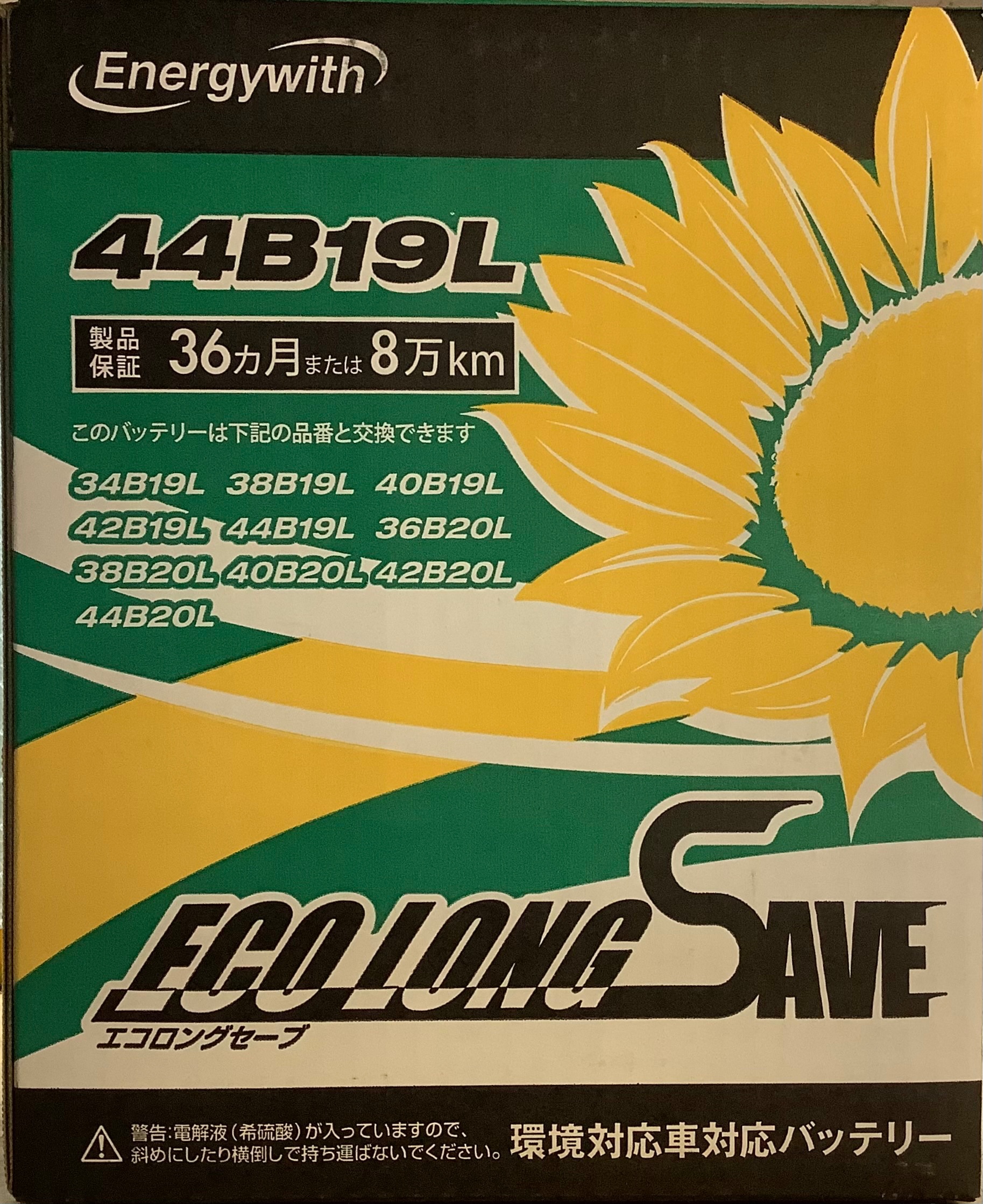 使用したバッテリーはEnergywithのエコロングセーブ44B19Lです。
