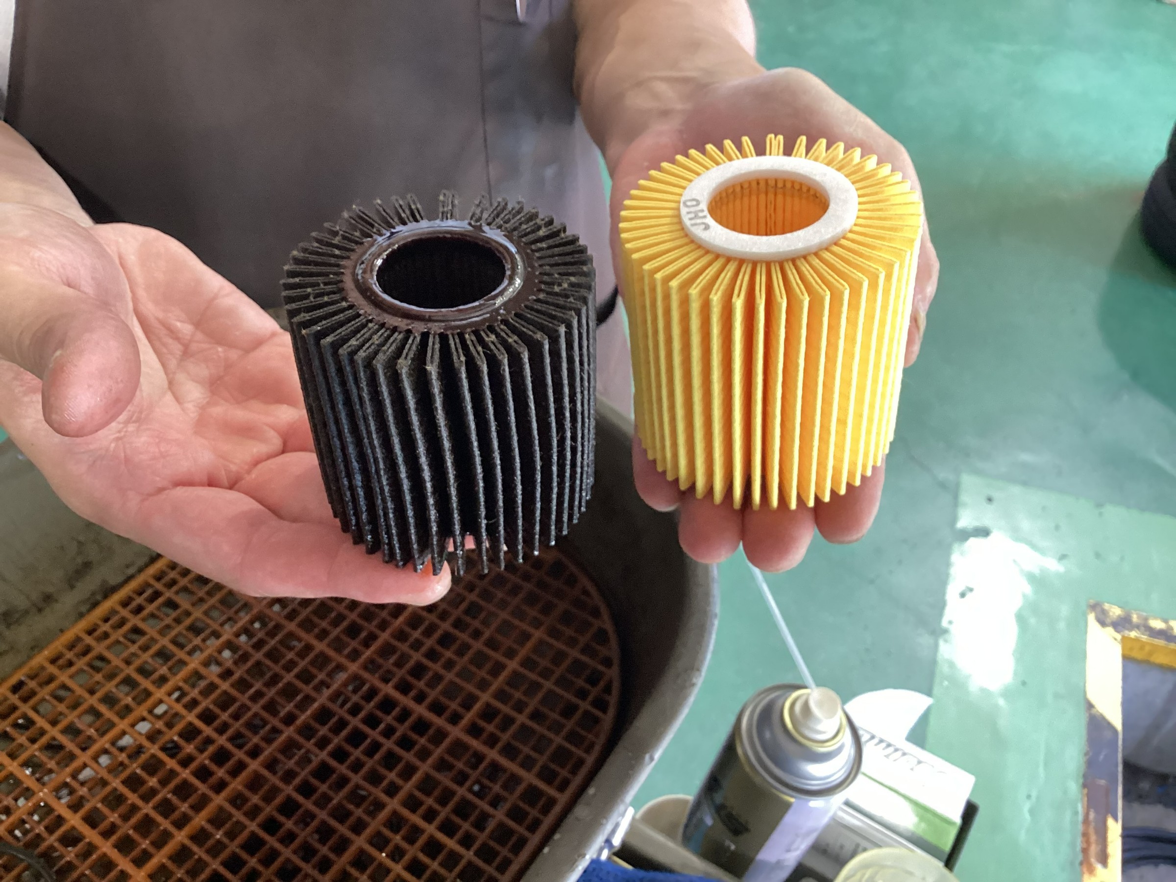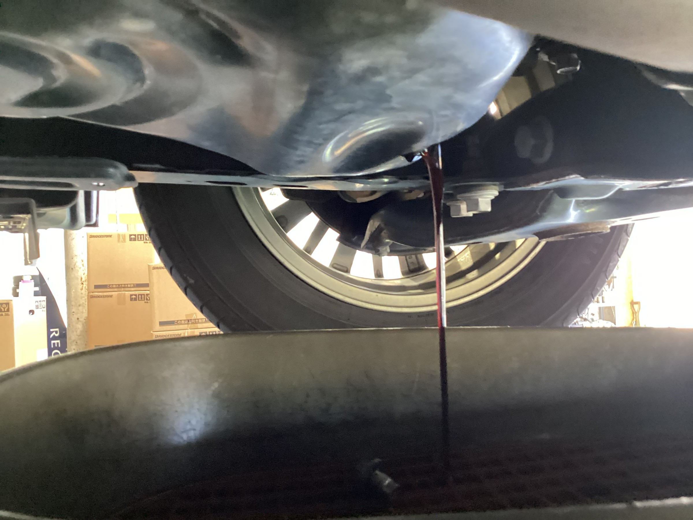 汚れて黒くなったオイルを抜き取り、新しいきれいなオイルを入れていきます。