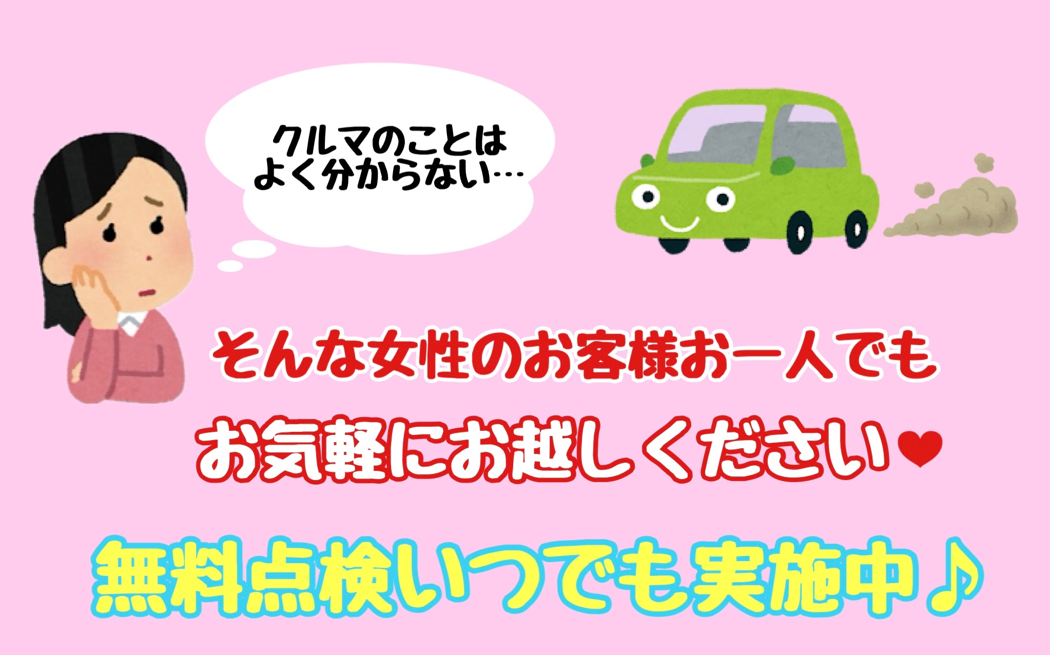 お車の簡単な点検はいつでも無料です!!