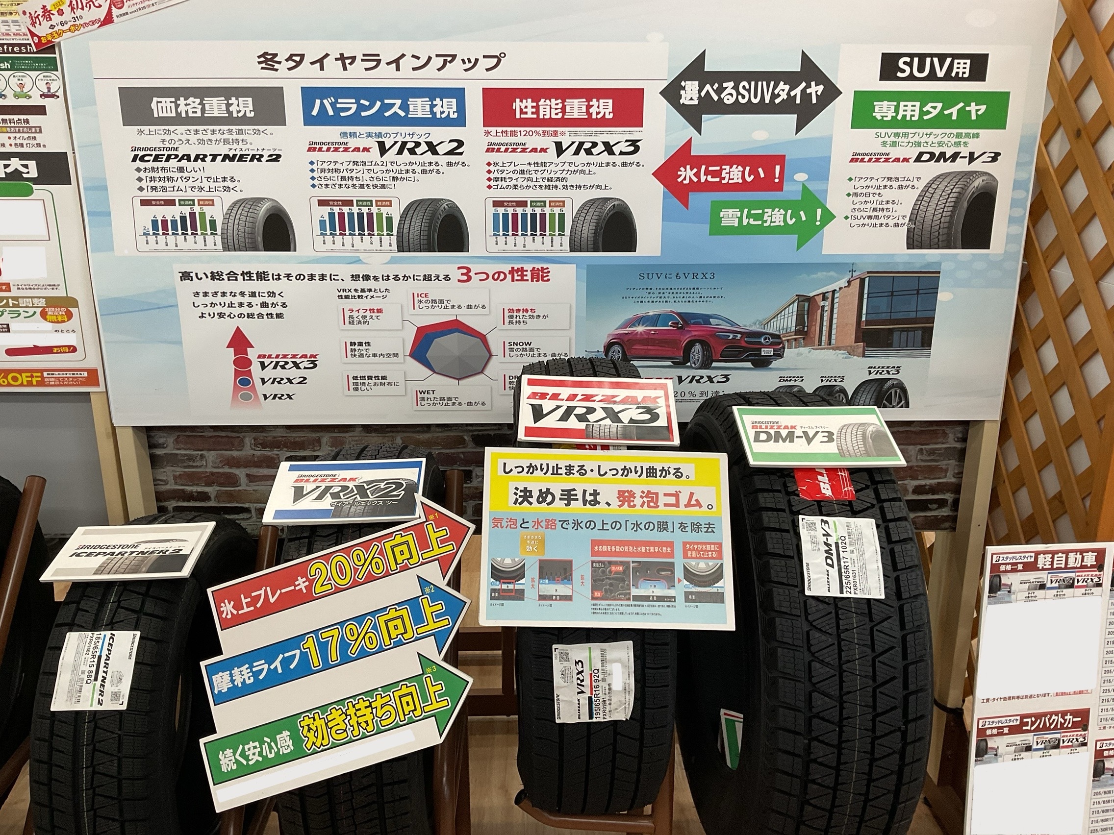 夏タイヤ・冬タイヤそれぞれブースを分けて展示しています!