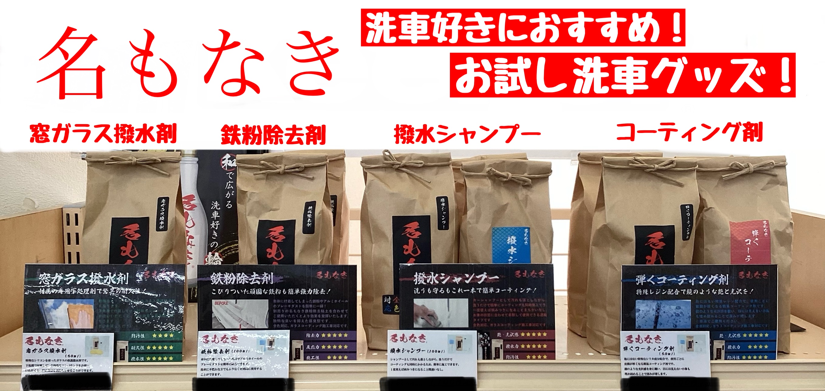 「名もなき」お試し洗車グッズあります!