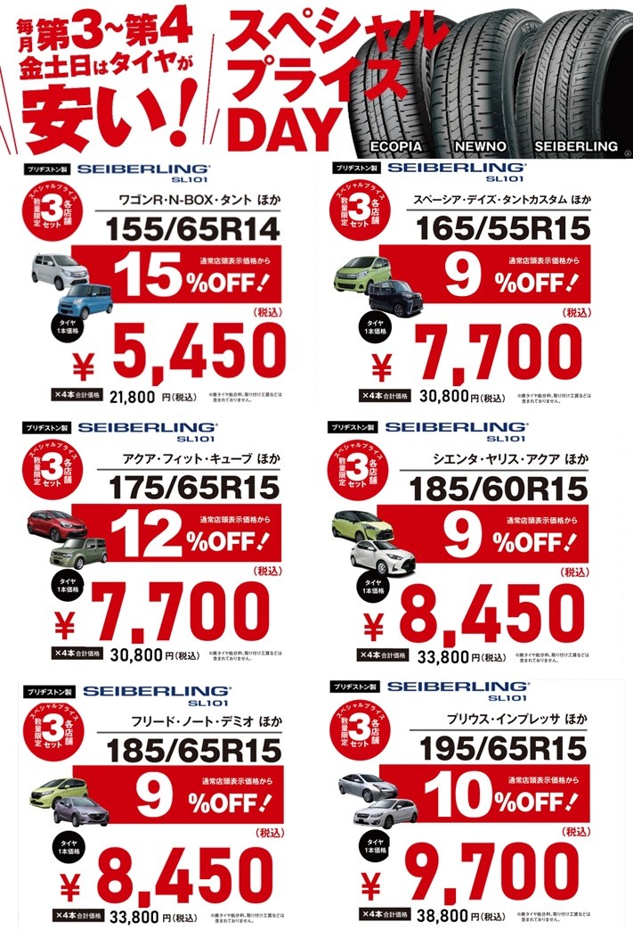 毎月好評のタイヤスペシャルプライスDAY!