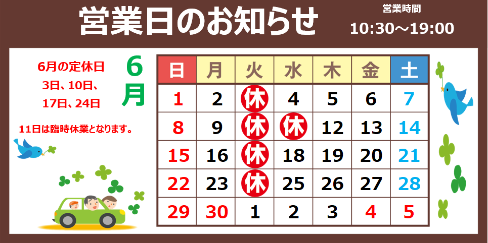 【6月営業日のお知らせ】