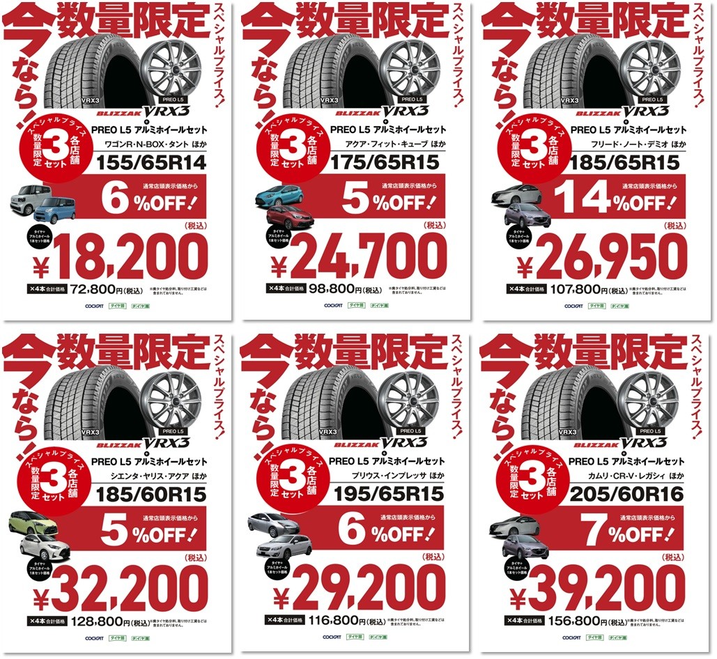 また、今回よりスタッドレスタイヤ ブリザックVRX3も追加となっております!
