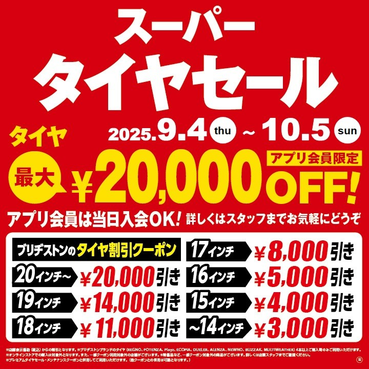 ブリヂストンのタイヤが、最大20,000円引き の