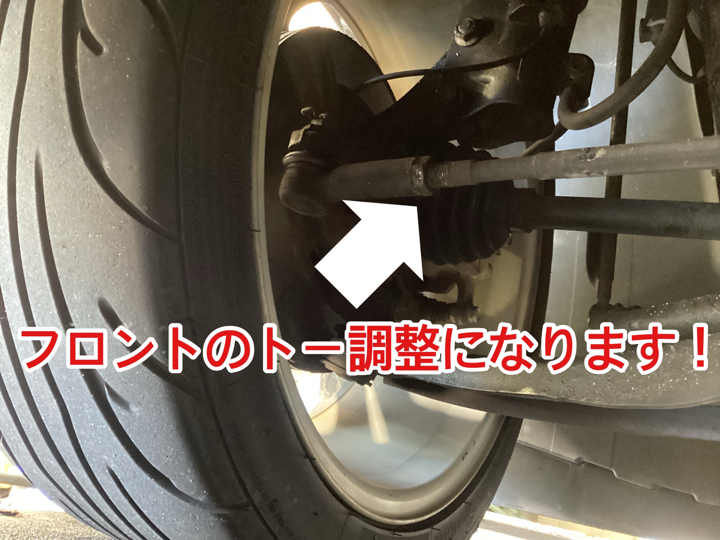 フロントのトーの角度をタイロッドで調整します!