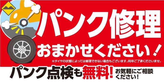 パンク点検・修理お任せ下さい!タイヤも1本から販売OKです!