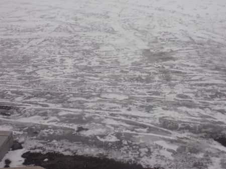 広い駐車場はタイヤの跡が凍った形で残っておりますよ(ノ◇≦。)
