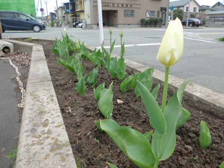 タイヤ館秋田の駐車場横のチューリップ咲きました♪(*´▽`)ノ