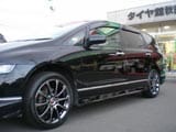 今回はオデッセイにエーエックス・エムエムエフを装着しました!繊細で質感のあるスポークデザインが鋭い曲線を描いてリムエンドまで伸びているアルミホイールです!!最近このブラッククロームカラーの人気があります!おすすめさせていただくと「この色いいね」とおっしゃって下さるお客様は多いですね!!