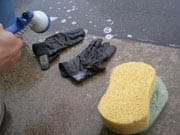 手袋を洗ってます!!