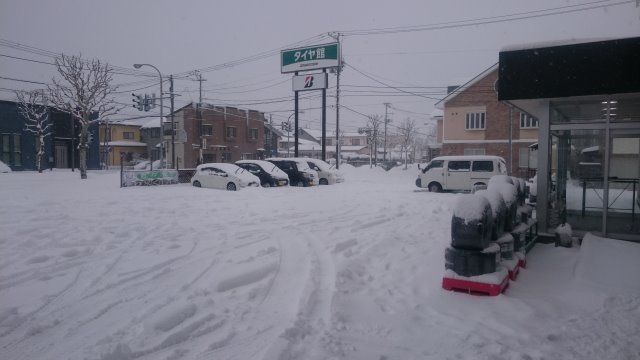 なのですが、昨日から降り続く雪のせいで、駐車場がエライ事に!!