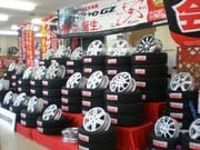 まず、入口からズラリとタイヤとアルミホイールのセットを展示しております!多様なサイズを展示しておりますのでお客様のお車に合うタイヤサイズがすぐ見つかると思います!!写真ではプライスが付いていませんが、現在はしっかりと付いています!!
