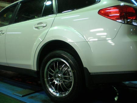 今回はレガシィ アウトバックにボルクレーシング・アールイーサンマルを装着しました!もうこちらのアルミホイールを紹介するのは、このコーナーではおなじみなりましたね(笑)ちなみにこのRE30をお選びいただき装着したお車がもう一台ありますので、後々紹介させていただきます!