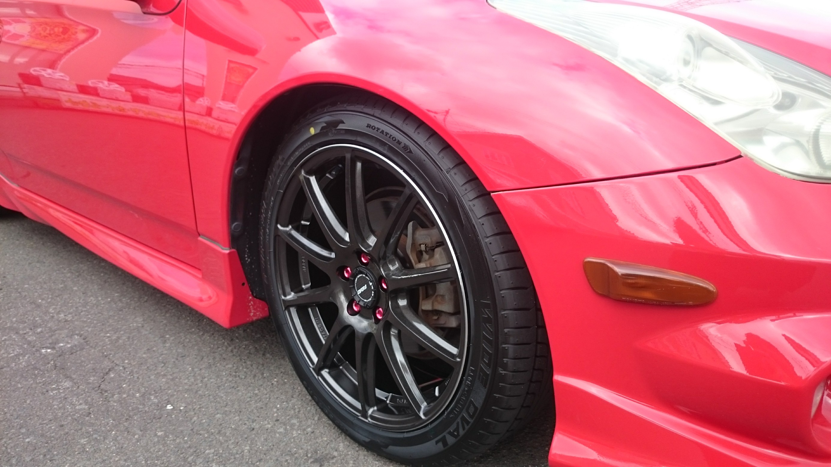 赤いボディーにホイールはブラック、そしてアクセントにナットはレッド☆