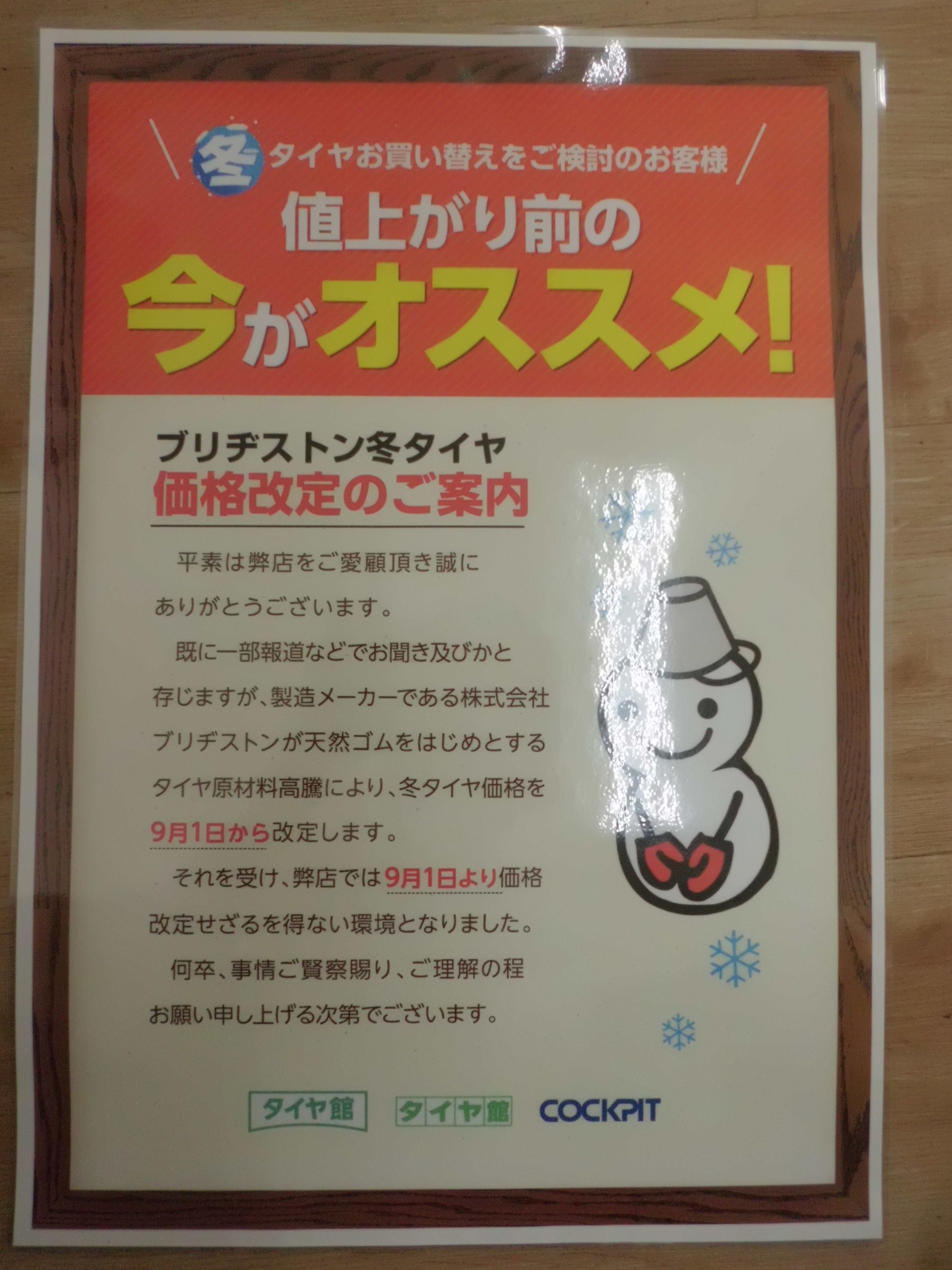 冬タイヤお買い替えをご検討のお客様は値上がり前の今がオススメです!!