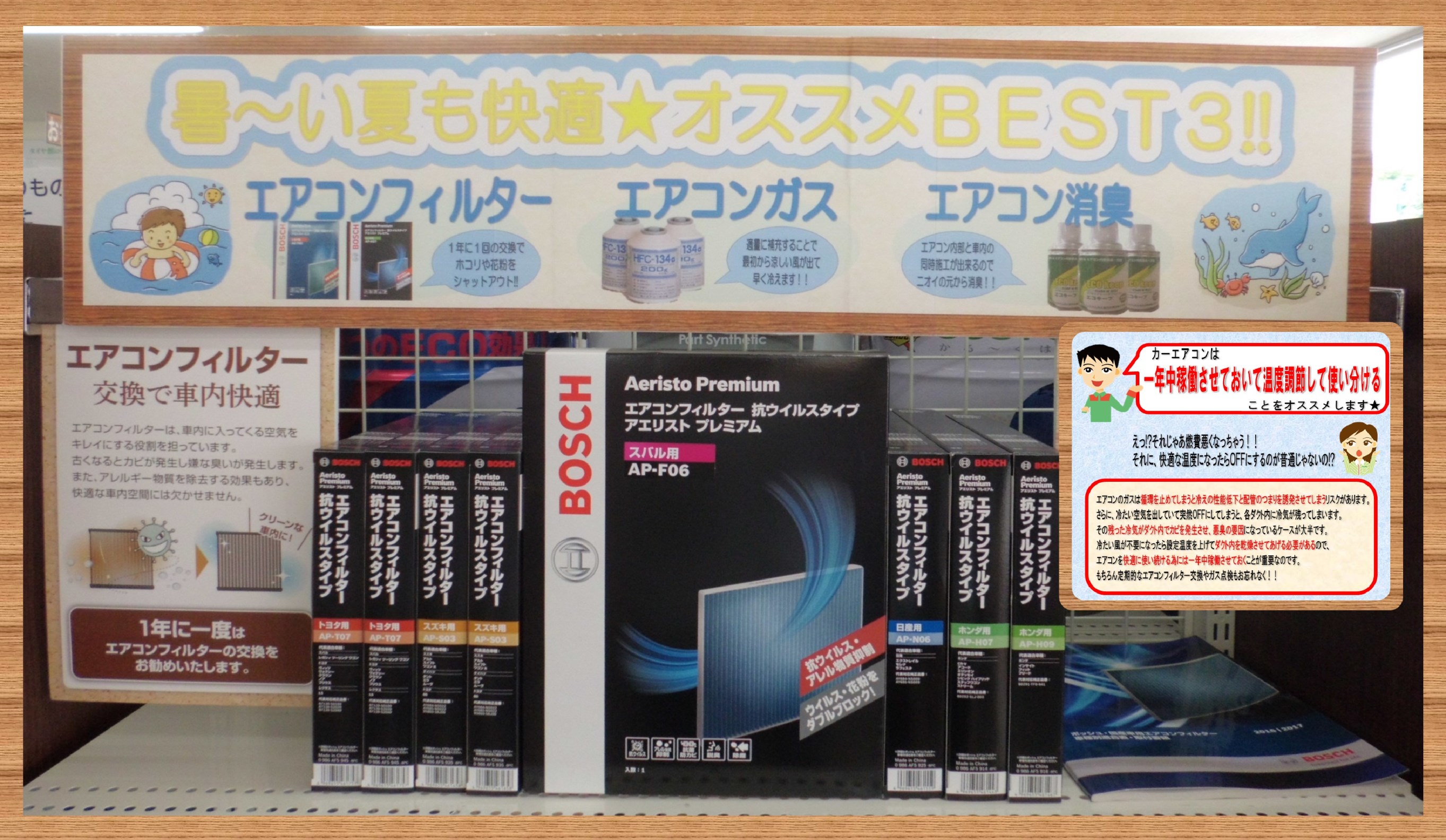 夏のドライブに欠かせないエアコンのガス補充やフィルター交換、
