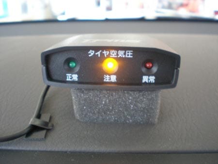写真がそのB-01で、本体はとてもコンパクトです!購入されてからのお車の指定空気圧の設定、登録、設置作業などは全て当店が行いますので、すぐにお使いいただけます!空気圧が正常の範囲であれば緑のランプが常時点灯し、もし空気圧が減った場合は、設定した空気圧より15%以上下がれば黄色に点灯し、30%以上下がれば赤色に点灯するようになっています!