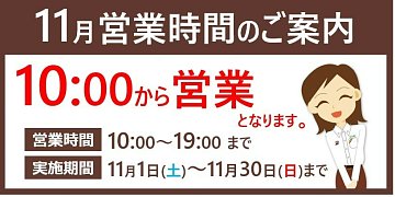 11月の営業時間変更のお知らせ