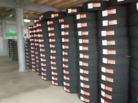 昨日積んだタイヤが見事に崩れてました! 初めての入荷作業で積む技術がまだまだ未熟だったようです(>_