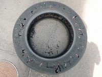 本日タイヤ館にこんなお客様が来店されました・・・ なんと、パンクしてタイヤがボロボロの状態じゃありませんか(((((( ;゚Д゚))))) パンクしてタイヤの空気圧が知らず知らず低下したまま走行してしまうと いつの間にかこういう状態になってタイヤが使えなくなってしまうんです(>_