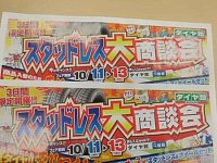 こんにちは、10月11、12、13日、3日間開催のスタッドレス商談会をやります。 ホイールセット品から単品まで、夏タイヤ売り尽くし価格等お求めやすくなっています ので是非来て見てください。(^O^)/