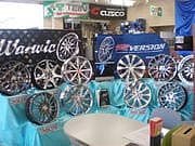 エムズスピードとワーウィックのホイールをメインに展示してみました!中央のモニターはエムズスピードのホイールを装着した車のDVDを流しています!商品情報にも載せていますのでチェックしてみてください! 秋田県内でもエムズのホイールを展示している店は少ないようなので、「人と同じようなもの...