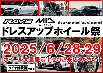 RAYS&MIDWHEELSイベントがいよいよ近づいて まいりました! 期間中はいつもは見られないサンプルホイールを多数展示の予定ですので ぜひ!皆様お誘いあわせの上ご来店ください! マッチングの確認やお見積りだけでも大歓迎です!