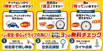 空気圧点検!ナットの締め付け確認!点検無料です!