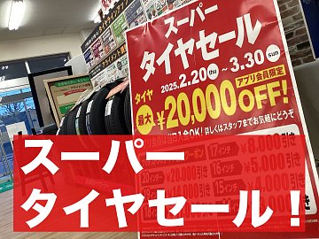 こんにちは!秋田市八橋のタイヤ館秋田です! タイヤ館ではただいまスーパータイヤセールを開催中! アプリ会員さまは最大20000円OFFにてタイヤをお求めいただけます! 今シーズンにタイヤ購入をお考えの方には たいへんお買得なセールとなっております! 保管中のタイヤが今年も使えるか分からない...