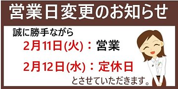 【営業日変更のお知らせ】