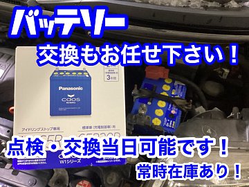 寒くなってまいりました。気温が下がるとバッテリーの 性能が低下しやすくなってしまいます。 皆様の愛車のバッテリーが心配です…。 バッテリーの状態が心配であればいつでもご相談下さい! 点検無料!在庫も豊富にあるので当日に交換作業OKです! 是非ご来店お待ちしております。