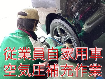 従業員自家用車空気圧充填!