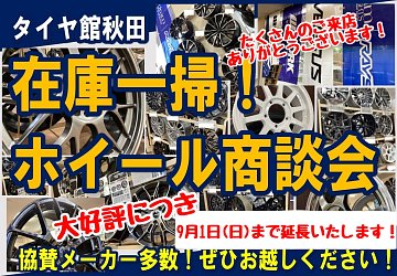 大好評につき、タイヤ館秋田限定在庫一掃アルミホイール商談会延長します。9/1まで残り二日!!!