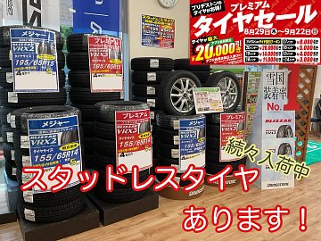 みなさまスタッドレスタイヤのご準備はお済みでしょうか? タイヤ館秋田ではスタッドレスタイヤを続々入荷中です! 履き潰しされてる方や延びていた新型車の納車された方、 冬シーズンに入ってからのご準備では、欠品する事も予想されます。 そうなって慌てる前に、今のうちに準備して手元に置いて...