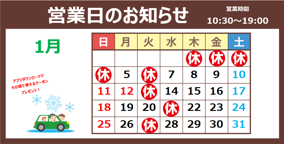 2026年1月 営業日のおしらせです!!
