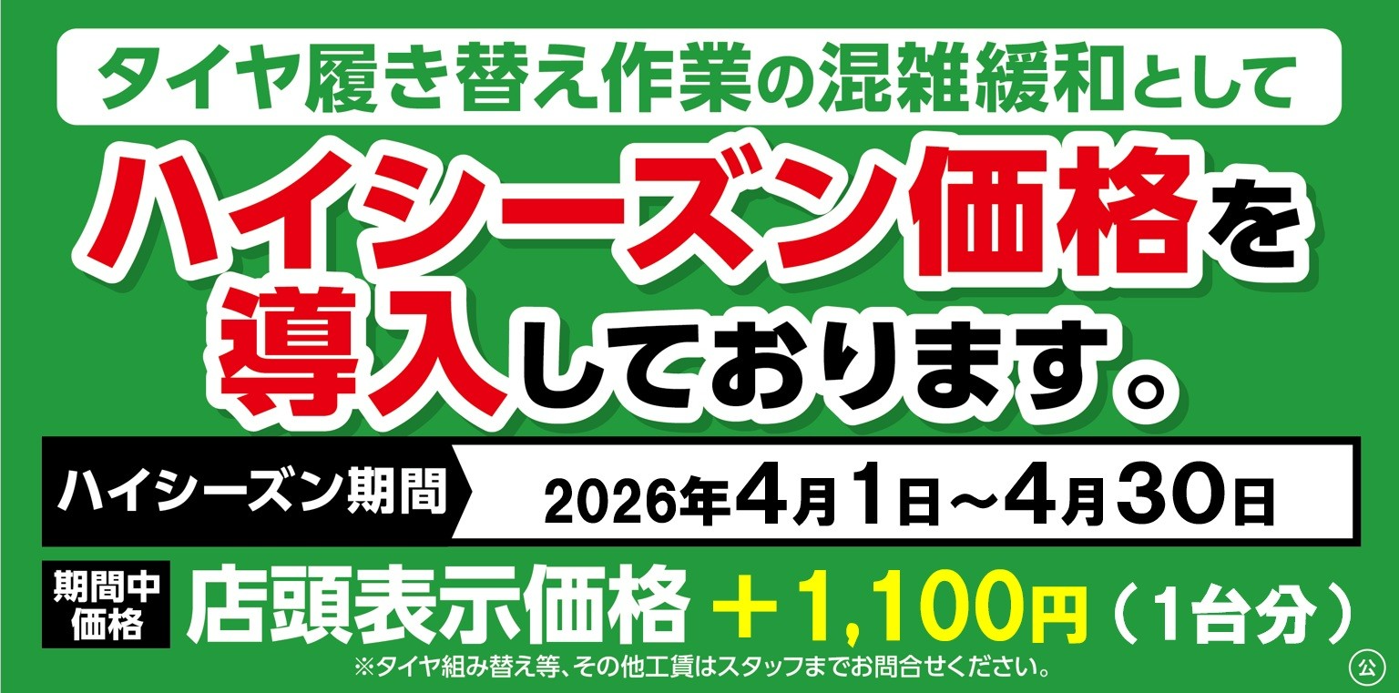 2026年3月1日よりタイヤ脱着(履き替え)料金を改定させていただきます。