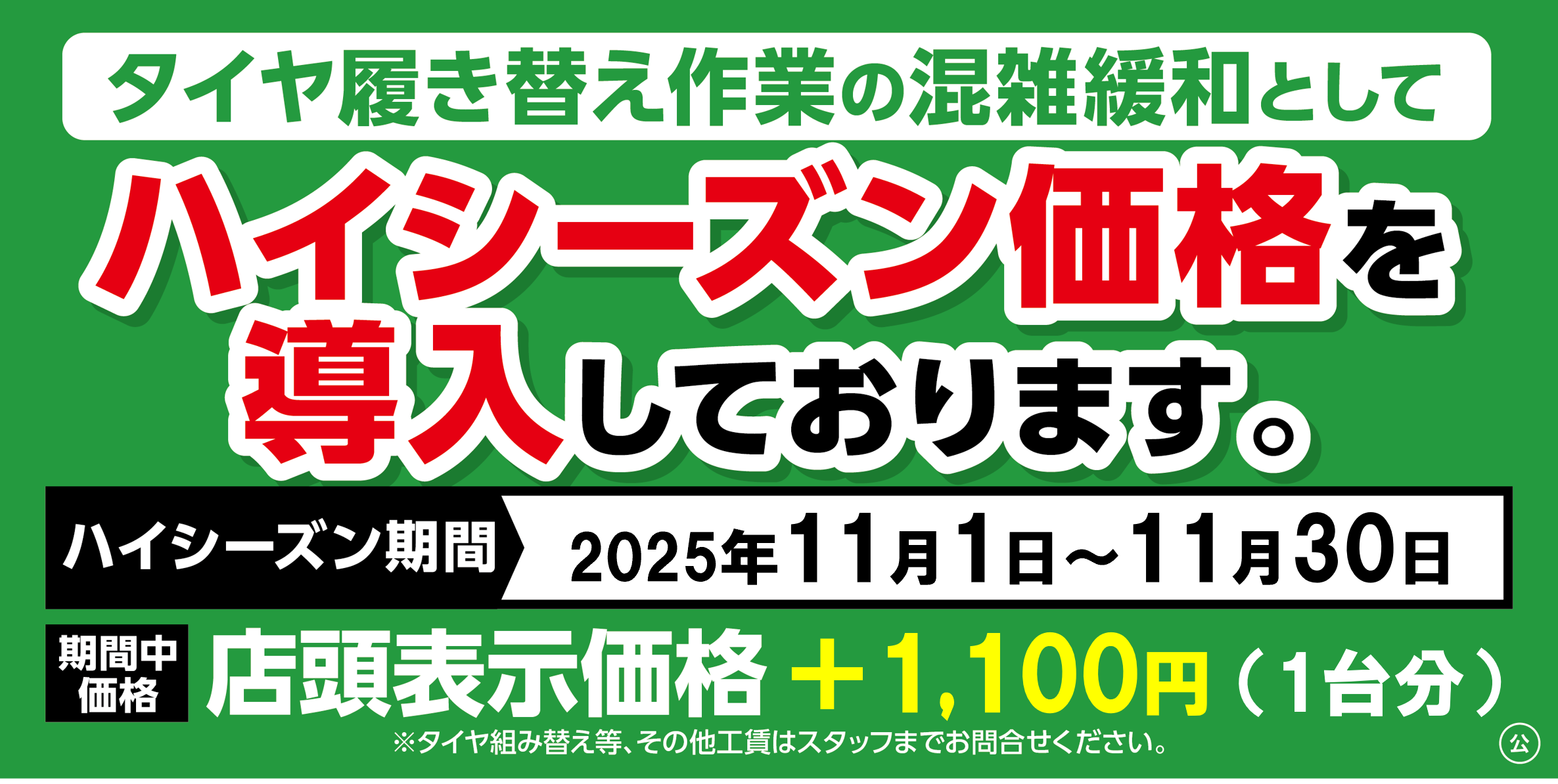 【11月から】タイヤ交換料金がハイシーズン価格となります。