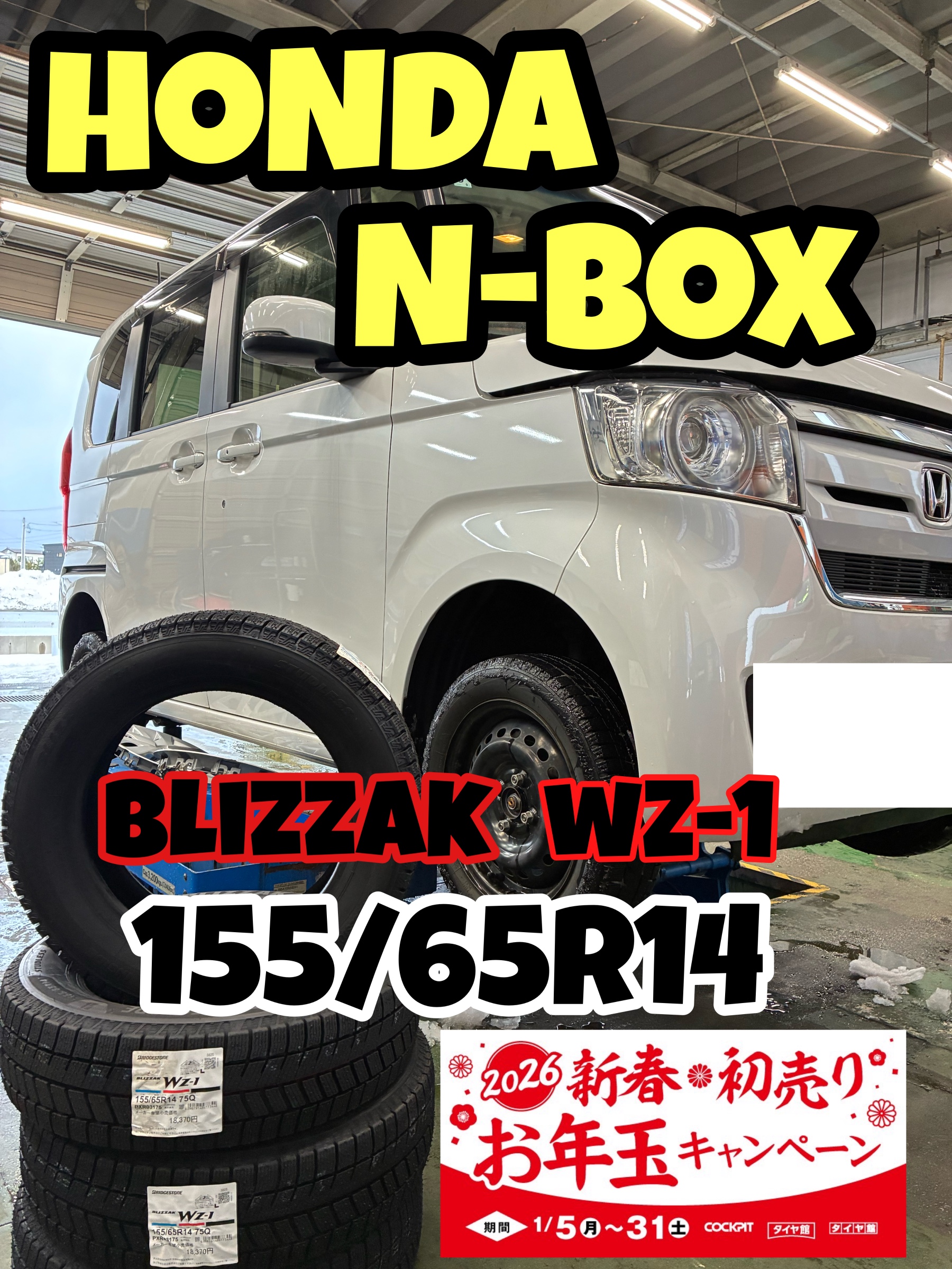 ホンダ N-BOXへ冬タイヤBLIZZAK WZ-1ご成約!!新春セール好評開催中!!