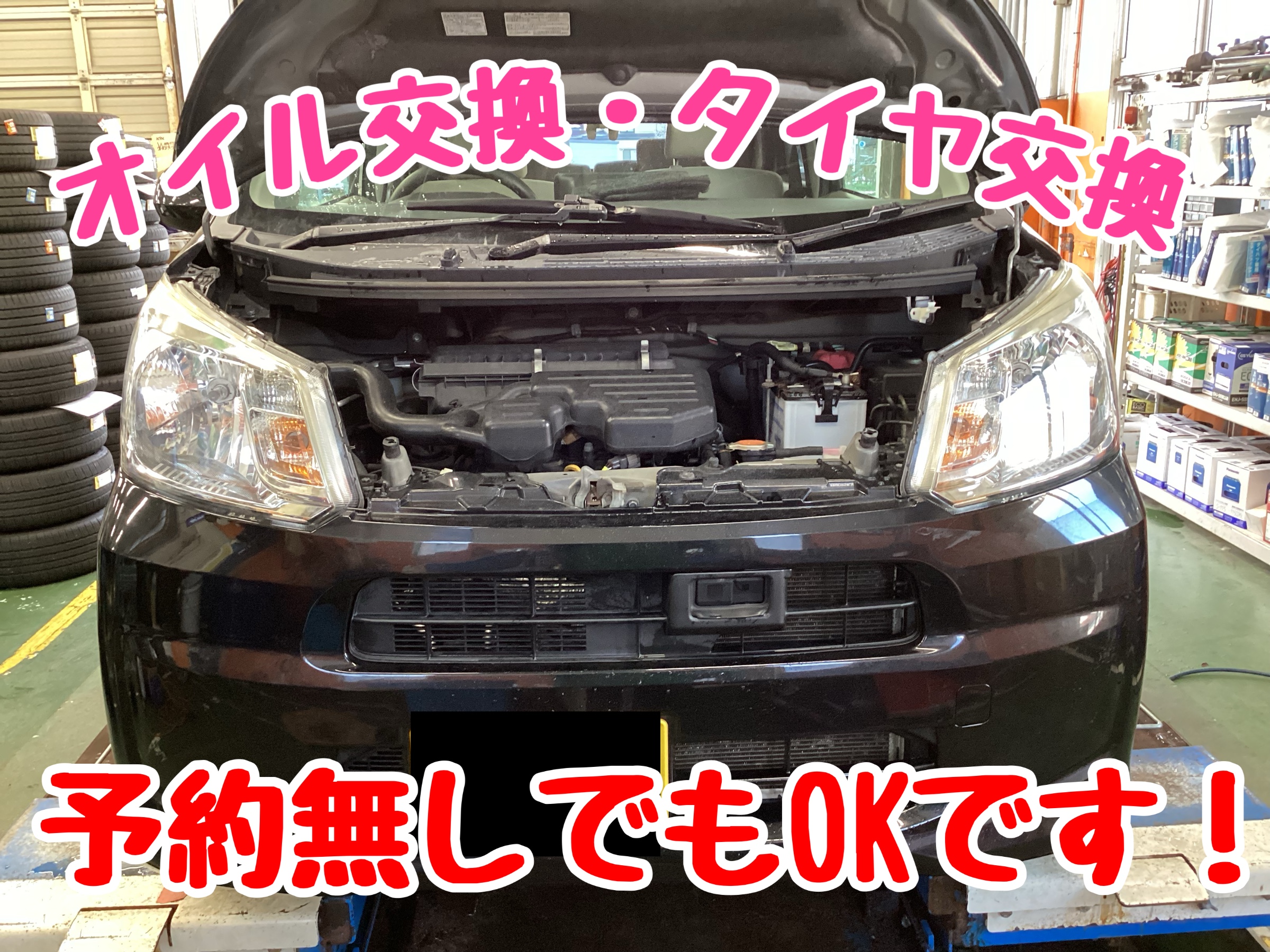 オイル交換・タイヤ交換予約予約無しで対応可能です!
