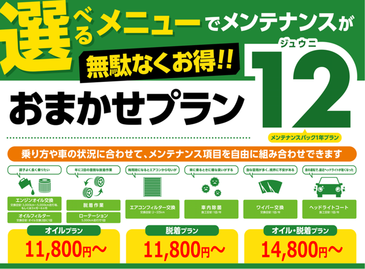 おまかせプラン12(旧メンテナンスパック)料金の改定をさせていただきました。