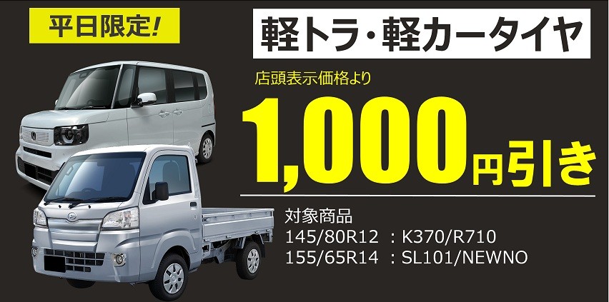 ①タイヤ1,000円引き