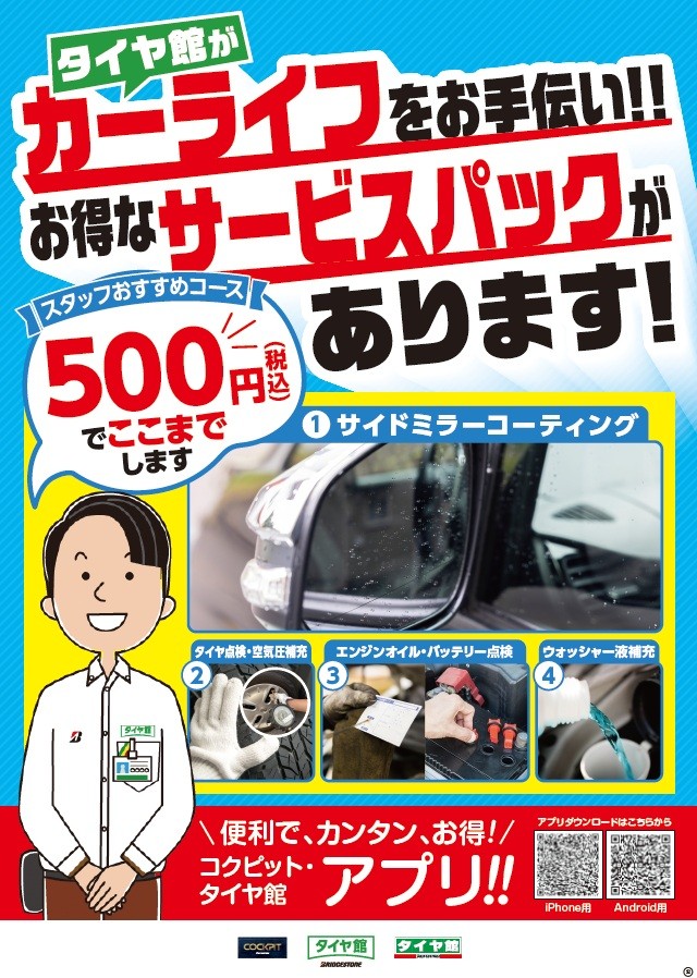 只今、タイヤ館アプリ新規ご登録で500円OFF