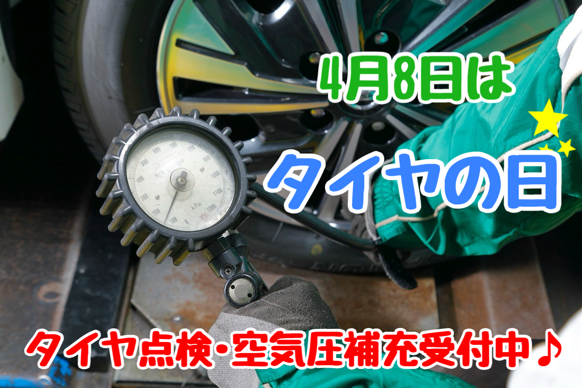 4月8日は【タイヤの日】 タイヤ点検・空気圧補充無料受付中♪