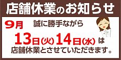 いつもタイや館秋田仁井田の HPをご覧いただき ありがとうございます(^^)/ 9月の定休日のご案内です。 明日、明後日の9月13日、14日は 定休日となりますのでお間違えのないように お願いいたします。 その他の定休日はこちらになります。 タイヤの購入だけではなく 空気圧の点検もお気軽にご来...