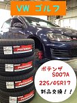 VW ゴルフ7へ新品タイヤ(ポテンザS007A)交換いたしました!!