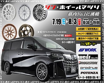 アルミホイール 県内No.1 に挑戦企画として、 本日より シン・ホイールマツリ を開催中です!! 開催期間:2025年7月19日(土)~2025年8月3日(日) 協賛メーカー:WORK(ワーク)、Weds(ウェッズ)、 ブリヂストン(対象:プロドライブ、ポテンザシリーズ) 開催期間中は、 ① お見積り・ご成約でオリジナル...