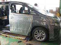ノアのピラー部のツゥイーター 加工取付です。 ドアノブ付近にも埋め込み。 ピラーのトッテ部分は 染めQで塗りました。 アベが野獣の如く仕上て 行きました。 結構変態です・・・。