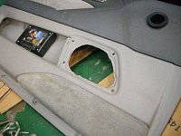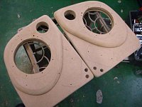 左右のカタチが整いましたので モケットとレーザー張りです。 クロスオーバーネットワークを 固定し、仮の配線ひきまわしをして とりあえずハイ!残業!! (>、<;)